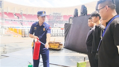 当天,消防员还对保安进行了培训,告诉他们如何使用干粉灭火器处置初期火险。“我们和安保人员建立了一系列的联动机制,为的就是确保以最快的速度处置险情,确保歌迷和演职人员的安全。”消防员告诉记者。