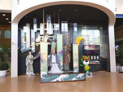 “上合之珠”崂山文化展示窗口以三大主题板块,构建起跨越时空的文明对话。“法显东归·一带一路的求法之路”板块,生动还原东晋高僧法显从陆路西行求法、经海路东归、登陆崂山的历程,直观展现这座海上仙山在古代“海上丝绸之路”中的重要地位。“三教合流·儒释道文化的多元共融”板块,则设置“崂山”解构字打卡装置,将崂山特有的儒释道文化转化为可感知的“文化符号”,让参观者在互动中体会“和而不同”的东方智慧。“大道崂山·山海神韵中的东方哲学”板块,更以山海奇观为引,串联起自然景观与历史人文,呼应“一带一路”倡议中“人与自然和谐共生”的全球共识,让“天人合一”的哲学思想可触可感。同时,“崂山小鳌”化身崂山的“文化代言人”,让参观者在趣味互动中加深对崂山的记忆。