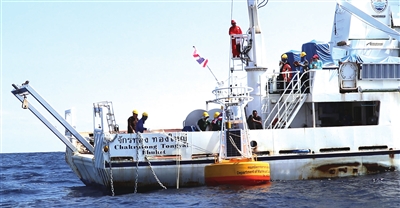在浩瀚的印度洋上,随着3000公斤重的锚块触底,海面上直径2.3米的浮标体和海底锚块之间5700米长的锚系绷紧,0米至700米深的水下钢缆分13层搭载17个水文传感器与浮标体上气象传感器开始工作。浮标系统每隔10分钟收集一次观测数据,并每隔3小时通过卫星通讯将这些数据传送至岸站与全球共享。