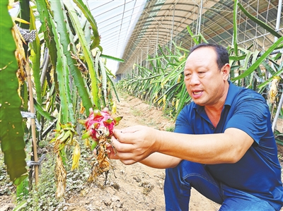 54岁的胶州市铺集镇河北村农民杨胜全,凭借农学专业背景和创新精神,成功将南方水果火龙果引进北方大棚种植。通过引进优良品种、运用夜间补光和自动控温等现代化科技手段,克服了“南果北种”的技术难题,不仅让南方水果在胶州“安家”,更结出了丰收的“甜蜜”果实。目前,他种植的火龙果每年可采摘四五茬,亩产约6000公斤,每亩毛收入达三万余元。因其火龙果口感好、新鲜度高,主要通过采摘游和线上销售,深受消费者喜爱,成为当地农民增收致富的“甜蜜”秘诀,真正让大家的日子越过越红火。