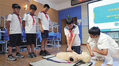 2025年9月13日是第26个“世界急救日”,在急救日来临之际,为提升学生的应急救护意识与技能,9月9日13时30分,由青岛市卫生健康委和青岛晚报联合主办的“健康教育进学校”公益活动走进青岛文登路小学,开展了一场生动实用的急救知识主题讲座,在理论与实践的互动中,学习守护生命的“必修课”。本次活动邀请了青岛市市立医院东院急诊科主管护师于观伟、徐帅担当嘉宾,生动详细地讲解了“猝死急救——心肺复苏”“海姆立克急救技巧”等急救知识。