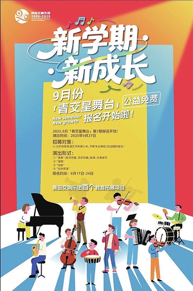 让孩子的艺术才华在专业舞台绽放。青岛交响乐团打造的首个教育拓展公益活动——“青交星舞台”青少年才艺展演即将启幕。即日起到9月24日,6至18周岁热爱表演艺术的青少年可免费报名,参与“青交星舞台”,9月27日在青岛市人民会堂前厅面向现场观众展演。