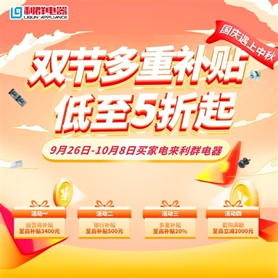 价格让利与专属权益双管齐下,是本次活动的亮点。9月26日至10月8日,利群电器携手行业知名品牌推出多重优惠:全场家电五折起;运营商补贴至高3400元;银行补贴至高500元;多重补贴至高减20%;套购满额至高补贴2000元,助消费者轻松享受科技变革。多家品牌推出融合中秋元素的家电产品,月亮、玉兔等传统文化图案装点的限量款小家电,以及可制作月饼的智能烤箱备受青睐。“既能做月饼,又能日常使用,这样的产品很有意义。”选购智能烤箱的张女士表示,“准备中秋与家人共制月饼,体验传统节日的乐趣。”