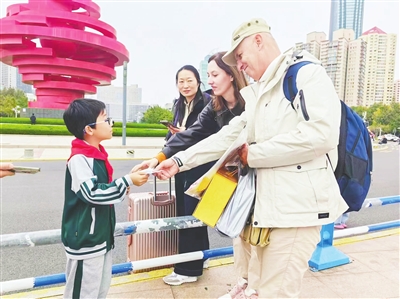 在五四广场,青岛立新小学“让我们乘着风出发”爱心义卖活动热闹开启。同学们化身“爱心守护者”,分工协作售卖明信片、书签等物资,热情向游客呼吁爱心助残公益。从最初的紧张羞涩到从容沟通,即便遭遇拒绝也微笑面对,不到一小时所有物资售罄,筹得善款已全额捐赠至残联,既锻炼了沟通协作能力,更在心中种下善良与勇气的种子。