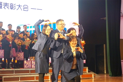 青岛二中每年班主任节的活动现场,气氛热烈堪比明星演唱会。今年,这场特别“应援”创意再次升级。12月5日,青岛二中以“百年匠心育桃李 培根铸魂传薪火”为主题,举行第五届班主任节庆祝暨表彰大会。记者在现场见证了一种超燃的“双向奔赴”:这边学生们高呼“这班没你真不行”,那边平日严肃认真的“老班”们集体戴墨镜开跳……班主任节增进了师生情谊,让教育在创新的仪式感中焕发活力。