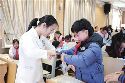此外,张胜男还传授了几个生活小妙招:搓搓背,暖肺腑。晚上睡觉前,父母可以把手掌搓热,帮孩子搓后背,直到感觉热乎乎为止,这样可以温通背部,让肺更暖和;蒸汽润喉法。咳嗽剧烈时,倒一杯热水,用鼻子和嘴巴对着杯口呼吸水蒸气,湿润的空气能舒缓干燥的气管,注意保持距离,小心烫伤;避风如避箭。穿带领子的衣服,注意戴帽子,出汗后及时擦干,不要马上吹风。她还特别强调了秋冬季节的“三暖”原则:“背暖、肚暖、足暖”,提醒同学们及时增减衣物,避免受凉。