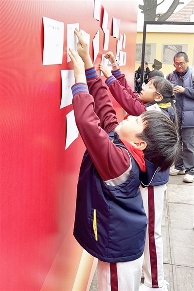 “我的信写给龙江路7号的墙,你记得赵太侔推窗时抖落的月光,曾经‘戏剧救国’的种子,已埋进青岛潮润的土壤。”“我的信要放进福山支路5号的信箱,碧海青天,不寒不暑,绿树红瓦,可舟可车,是康有为对这座城市的褒奖。”……在骆驼祥子博物馆,诗朗诵《信,从未寄出,却已到达》饱含深情,将活动氛围推向高潮。伴随着音乐和诗朗诵,参加活动的学生们用稚嫩的笔触写下一封封寄给过往的信,信里装满对英雄的追思、对历史名人的敬仰。