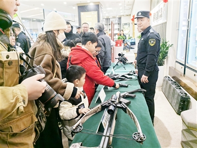 10日上午10时许,海天MALL中心G层及南广场,青岛公安“四十载守护平安,110勇毅前行”主题宣传暨“冬季守护·平安相伴”主题宣防活动正式启动。在户外区域,交警铁骑的摩托车、特警队员的防暴装甲车吸引了大批市民前来参观并合影留念。在室内区域,特警支队展示的弓弩、防暴枪、突击步枪、手枪、排爆服等装备,让很多市民第一次摸到了“硬核装备”。