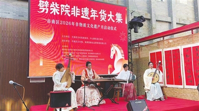 本报2月9日讯 锣鼓声中醒狮跃动,劈柴院小广场被浓浓的“非遗年味”悄然唤醒,处处洋溢着一派红火喜庆的中国年景象……7日,劈柴院非遗年货大集暨2026年市南区“非遗月”启动仪式在劈柴院举行。