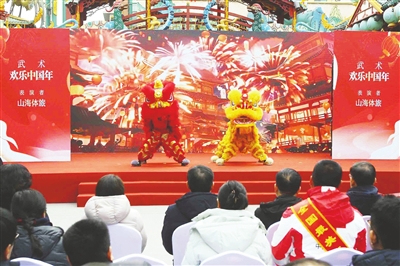 启动仪式由“山海迎新春”“山海共团圆”“山海启新程”三大环节组成,活动在热情洋溢的开场表演《欢乐中国年》中拉开序幕,舞狮的雄健、武术的刚劲与明月山海间不夜城欢快的歌舞交相辉映,民俗韵味与现代表演艺术深度融合,奏响新春的喜庆乐章,瞬间点燃全场热烈气氛。