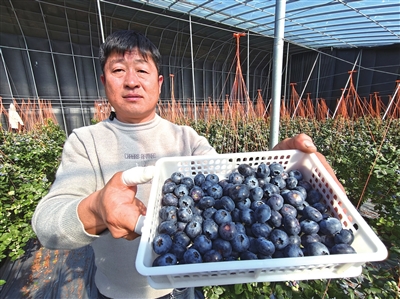 本报2月12日讯 随着马年春节的脚步临近,平度市旧店人家生态农业种植合作社内,香甜可口的“盆栽”花香蓝莓迎来了采收期,比以往大棚地栽蓝莓提前了一个月上市。合作社负责人王书昆借助“大棚+盆栽”的创新种植模式,蓝莓树实现了提前挂果,品质更优,目前每公斤蓝莓批发价达到160元,有力带动了合作社和周边农户的经济收入。
