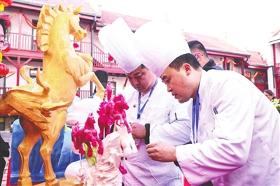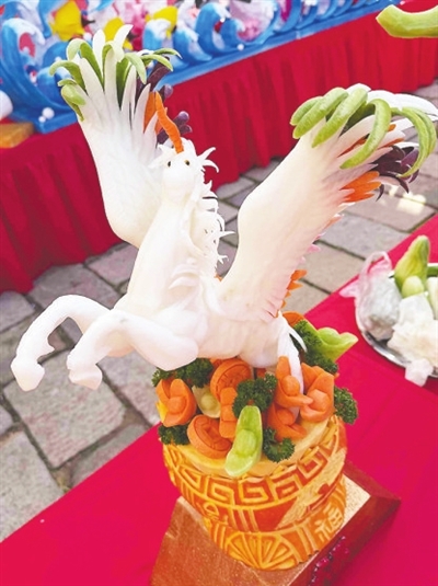 大赛在“大师绝活展示”环节中拉开帷幕。雕刻大师现场表演百秒速雕等技艺,普通的萝卜在他们手中化为奔腾的骏马、精巧的楼阁,让观众近距离感受到非遗技艺的独特魅力。正式比赛中,30名来自专业院校、星级酒店及民间团体的雕刻选手围绕马年主题展开角逐。