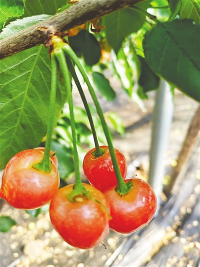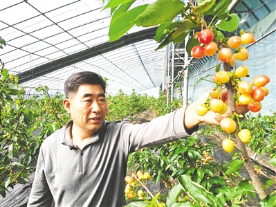 春节假期刚过,在平度市云山镇北王戈庄村果农何洪礼的冬暖大棚里,早熟品种“齐早”大樱桃已经果满枝头。这些果树是2024年10月底引进种植的,去年12月底开花,今年1月开始坐果。目前,大樱桃已经陆续成熟并采摘上市,“抢鲜”春节后水果市场。