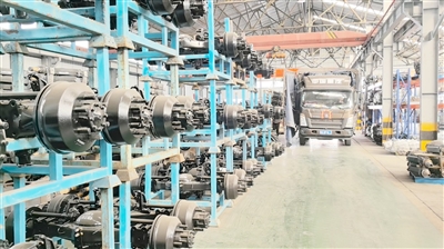 在出货仓库外,一辆装载着48根货车后桥的半挂车正准备驶出。工作人员告诉记者,这家企业是2014年从贵州省引进青岛的,年产5万到6万根各类货车的车桥,目前已经是一汽、重汽和柳特等货车制造企业的零部件供货商。车桥是货车的核心部件之一,其重要性体现在承载、驱动、转向和制动四大关键功能上,直接决定了车辆的载重能力、行驶稳定性、动力效率和行车安全。