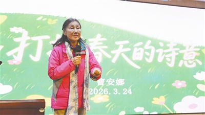 “春天到了,你看到了什么?”在现场的提问互动中,曹安娜对几位老师的回答做了点评和总结,她指出,写诗歌要抛开不可感的抽象的词句,使用具体可感的词句,“要感动别人,先要自己看得到。我写的诗得有真情实感,你才能有共鸣。春暖花开,万物复苏,在我看来是陈词滥调,没有创意。有个小学生用了春暖花开这个词,我问他是什么花,他说不知道。我们在教学中,不能只让学生背书本知识,抄好词好句,而限制了学生的创造力。”