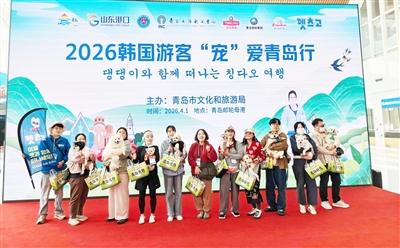 本报4月1日讯 4月1日上午,“韩国游客‘宠’爱青岛行”欢迎仪式在青岛邮轮母港顺利举行,首批韩国携宠游客乘船抵青,开启为期三日的青岛之旅。此次活动是全国范围内率先布局的规模化宠物友好入境旅游项目,也是山东迎来的首个“携宠入境”旅游团,标志着青岛在开拓中韩宠物友好旅游细分市场、培育入境旅游新增长点上实现标志性突破,为青岛文旅产业高质量发展注入全新动能。