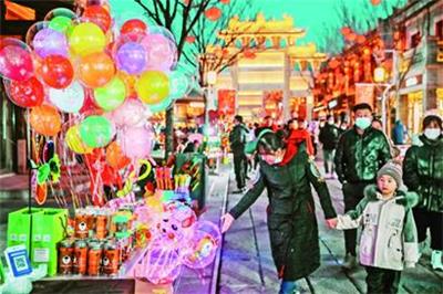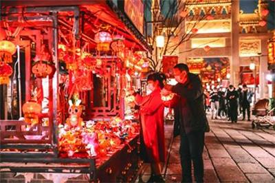 传统风俗登场,增添了浓郁的人文风采。市民在古街赏花灯、品民俗、吃美食。