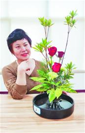 陈馨和她的插花作品。王丽退休后专门学习形象设计。