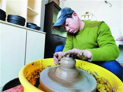从一堆泥土到一把壶、一个盆,要经过挖泥、挑泥、揉泥、闷泥、拉坯、塑形、晾坯、修坯、压光、刻花、干坯、烧制等20多道环节……采访中,刘加欢拿出两把精致的黑陶壶说,这是他在原有技艺的基础上创新改造而成的,看上去效果非常好,有不少朋友找过来订制。刘加欢说,做成一把品质上佳的茶壶,唯一的原料——黑黏土至关重要,要经过分离、层层过滤才能得到。有了原料,而后便是制坯。只见刘加欢就像揉面团一样先将泥和水揉匀,然后将泥团摔掷在一个转盘平台上,随手法的屈伸收放拉制出一个小茶壶坯体的大致模样。