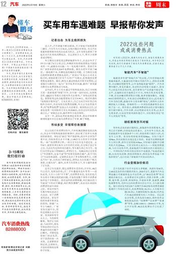 2月过半,3月即将来临。一年一度的3·15国际消费者权益日就要到了。对消费者来说,这是一个大日子,各种消费委屈都可以表达出来。往年,汽车消费是3·15投诉的重灾区,今年也不例外。不想让血汗钱打了水漂?不想被无良商家割韭菜?青岛早报来帮你撑腰。