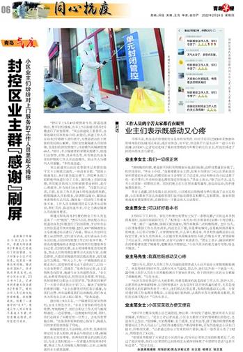 “疫情虽然限制了大家进出小区的自由,但反而让邻里之间的距离更近了,经过了此次疫情,我们小区邻居们之间的相互关爱深刻体现了中国那句老话‘远亲不如近邻’。 ”范女士说。