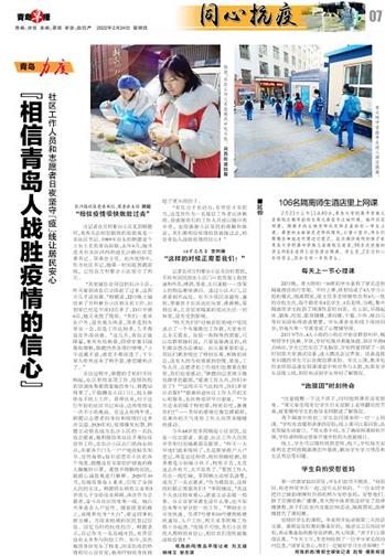 “有压力才有动力,有责任才有担当,这是我作为一名基层工作者应该做的。很感谢我们的工作人员夜以继日的辛劳,也很感谢小区居民的理解和体谅,我们都相信疫情很快就能过去,相信青岛人战胜疫情的信心! ”