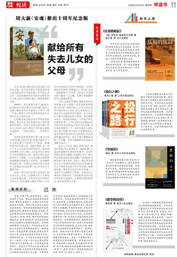 近日,作家出版社推出《安魂》十周年纪念版,该书是茅盾文学奖获得者周大新为纪念英年早逝的独子而写的泣血之作。由此改编的同名电影也定档3月4日上映,由实力派演员巍子、陈瑾等领衔主演。