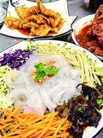 说起减肥,菜蘸酱是地道标准的东北小清新。东北蘸酱菜丰俭由人,普通的大葱、蒜苗、洋葱等直接摆上桌,油麦菜、娃娃菜、芹菜这样其他地区很少生吃的菜,在东北亦可以拿来生吃。而除了蘸酱菜,还可以升级做成东北大拉皮,拉皮配上色泽鲜艳的蔬菜,再加上陈醋或大酱等调料,同样鲜美清爽。