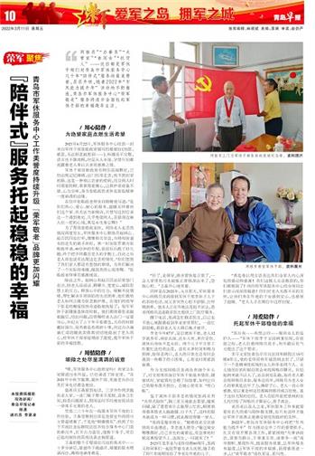 2022年,青岛市军休服务中心将把“作风能力提升年”作为推动全年工作的重要抓手,扎实有效开展各项工作,紧紧围绕“凡事讲政治,谋事为群众、干事重实效、成事争一流”高举旗帜、展现作风,提高服务质量,让军休服务有温度,让军休干部的幸福感、获得感更进一步,让“荣军敬老”成色更足、更闪亮。