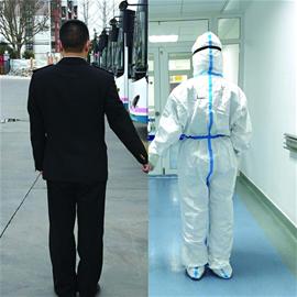 牛兆龙的妻子王婷是青岛市第三人民医院的护士,接到疫情防控工作的通知,毅然进入医院的隔离病房。如今,她已经在抗疫一线工作一周多了,每天连轴转地轮班工作,克服各种困难,精心照料病患,为他们测量体温、记录身体状况。一层层密不透风的防护服、长期穿着的尿不湿、起雾模糊不清的护目镜……对她来说,救治工作全靠意志力克服难关,但看到一个又一个患者康复出院,她就觉得一切都值得。