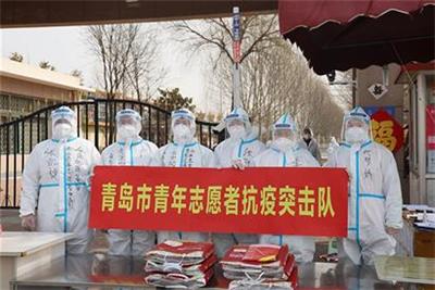这样的抗疫先锋队,在莱西还有许多。滨河新村青年突击队。志愿者用喇叭提醒居民做核酸检测。志愿者上门服务独居、困难老人。