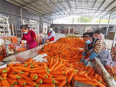 记者了解到,店埠镇将一家一户分散种植胡萝卜的农民组织起来,以 “合作社+基地+农户”的生产经营模式,引领大家抱团发展,依托万亩国家农业综合开发园区,因地制宜发展胡萝卜特色产业,园区共有农产品加工龙头企业11家、合作社15家。借助互联网,通过打造完善的营销渠道,建立生产、加工、销售一条龙电子商务平台,店埠镇的胡萝卜走出国门,走向了世界。