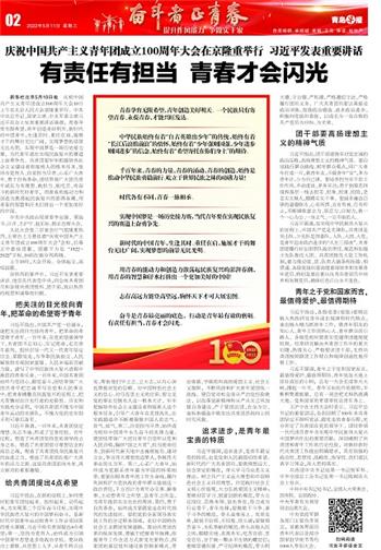 奋斗是青春最亮丽的底色,行动是青年最有效的磨砺。有责任有担当,青春才会闪光。