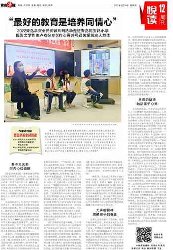 罗素曾经说过,最好的教育是培养同情心,而最好的同情心则是扩展了的同情心。 5月18日下午,2022青岛早报全民阅读系列活动之 “作家进校园”暨版权保护宣传活动走进青岛同安路小学,知名报告文学作家卢戎与孩子们面对面,分享了她的获奖作品《你是我的眼》的创作过程,为他们展示了一个看不见光影却内心充盈斑斓的世界。“有时候,上天没有给你想要的,是因为你值得拥有更好的。 ”正如卢戎在讲座中所言,书中主人公们励志且感人的奋斗经历也让这些在蜜罐中长大的孩子多一个视角去看待周边的人与事,从而认识到“为他人着想的善良,根植于内心的修养”。