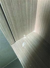 除此之外,卫生间门下石材划痕多处,门扇玻璃划痕多处,北墙踢脚线拼接不齐1处。张师傅还发现,卫生间的窗扇也有开启碰撞现象,并且玻璃划痕严重。张师傅建议业主刘先生,若玻璃划痕严重或者单块玻璃多处划痕无法修补,则需要及时更换。