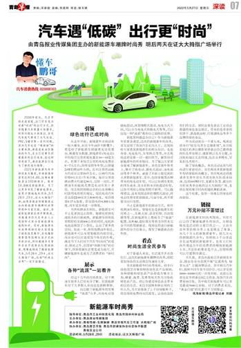 2021年新能源汽车市场迎来大爆发,市场渗透率甚至达到14.8%,这意味着每卖出100辆新车,就有14.8辆是新能源车。为了让更多市民了解新能源车,能更方便地选车用车,5月28日、29日,证大大拇指广场,由青岛报业传媒集团主办的新能源车潮牌时尚秀即将和大家见面。届时,多款新能源新车将齐聚现场,并邀请多位汽车专业人士现场和大家分享新能源车选购知识。同时,新能源车时尚秀现场还给大家准备了绿色园艺集市、自然摄影展等倡导低碳生活方式的多彩活动,同时邀请多支青年音乐节优胜乐队现场助演。想要选购或了解新能源汽车,5月28日、29日,证大大拇指广场,这场“时尚生活秀”一定不能错过。
