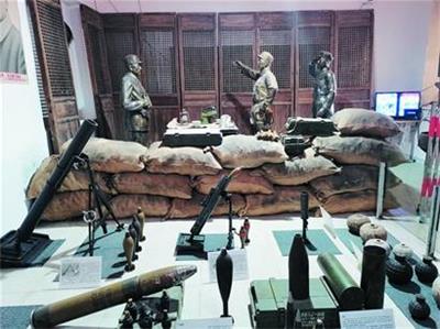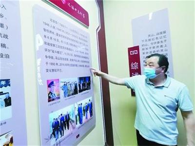 红色纪念馆里模拟出的灵山战斗指挥所。杨显良在红色基地介绍灵山战斗。