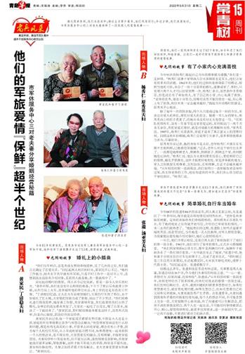 婚礼简单热闹,他们乐在其中;婚后生活聚少离多,他们风雨同行;年过古稀,他们浪漫依旧,市军休服务中心的三对老夫妻演绎了一段段感人的爱情故事……黄家民和妻子丁清稳杨秀仁和妻子原秀英张遗和妻子汤亚芳