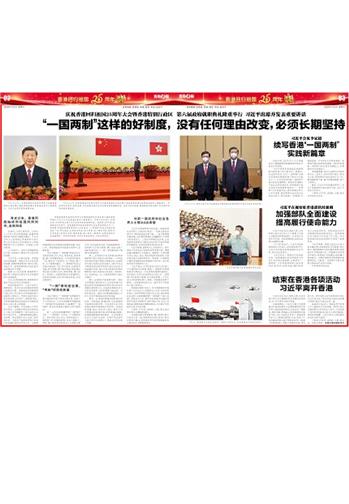 庆祝香港回归祖国25周年大会暨香港特别行政区第六届政府就职典礼7月1日上午在香港会展中心隆重举行。中共中央总书记、国家主席、中央军委主席习近平出席并发表重要讲话。他强调,25年来,在祖国全力支持下,在香港特别行政区政府和社会各界共同努力下,“一国两制”实践在香港取得举世公认的成功。“一国两制”是经过实践反复检验了的,符合国家、民族根本利益,符合香港、澳门根本利益,得到14亿多祖国人民鼎力支持,得到香港、澳门居民一致拥护,也得到国际社会普遍赞同。这样的好制度,没有任何理由改变,必须长期坚持。