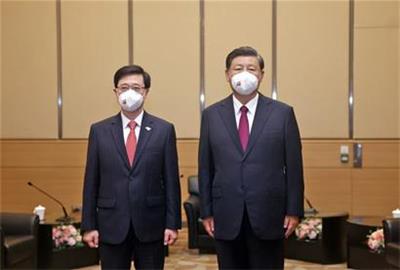 7月1日上午,国家主席习近平在香港会见刚刚就职的香港特别行政区行政长官李家超。