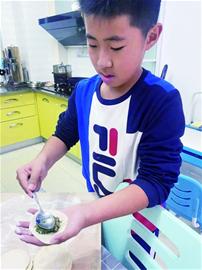 “像擀饺子皮、切菜这样的备菜工作,他做得井井有条,完全不耽误食材下锅。”王女士告诉记者,小时候因为爱吃饺子、包子,所以家里老人经常做。每次做的时候,张宇轩喜欢搬个小板凳坐在一边看,有一次张宇轩说:“我能试试吗? ”儿子主动学习擀饺子皮,爸爸和爷爷便耐心教他用擀面杖擀饺子皮的技巧。“家里吃饺子勤,现在他擀饺子皮已经很熟练了。”学会擀饺子皮,张宇轩渐渐成为家中“掌勺大厨”队伍中的一员,在爷爷、爸爸的帮助下,张宇轩从剥蒜、剥葱开始,慢慢学会了如何操作工具给土豆、茄子、黄瓜等蔬菜去皮;如何给西红柿、香菇改花刀;如何掌握腌鱼、腌肉时调味料的用量……