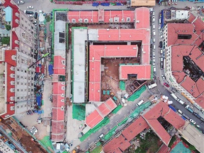 早报7月10日讯 近日,青岛最大的里院综合体——潍县路19号改造更新项目完成主体加固。待完工投用后,这里将打造成集购物、休闲、娱乐等业态于一体的城市新地标。