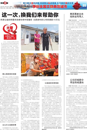 好人感动别人,也被别人感动着。张新介绍,宋良峰是一个只付出不求回报的好人,曾多次捐款帮助过多个残疾人群体,有一次遇到一名市民遭遇车祸,他还和其他志愿者一起捐了款。可是,他自己遭遇车祸无钱治疗的困难时刻,却没有向协会求助。助残志愿者协会的众多志愿者了解到宋良峰的情况后,立即掀起了一股爱心热潮,在很短的时间里,不仅即墨精英助残志愿者协会成员捐款,即墨许多好心市民也纷纷伸出了援手,先后捐出14万元的爱心治疗费,送到了宋良峰的病床前。