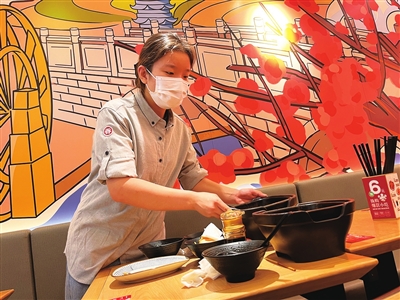 宋鑫磊在快餐店打工。