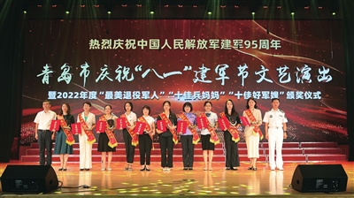 前方有他们热血卫国,后方有她们撑起一片天空。7月29日,青岛市庆祝“八一”建军节文艺演出暨2022年度“最美退役军人”“十佳兵妈妈”“十佳好军嫂”颁奖仪式举行,现场发布了2022年度“最美退役军人”“十佳兵妈妈”“十佳好军嫂”名单及先进事迹。