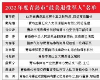 今年5月以来,为大力弘扬爱国奋斗精神,讲好退役军人故事,激励广大退役军人在乡村振兴、生态建设、基层治理、国防教育、疫情防控和抢险救灾等工作中踔厉奋发、笃行不怠,青岛市委宣传部、青岛市退役军人事务局、青岛警备区政治工作处联合举办2022年度青岛市“最美退役军人”选树宣传活动。