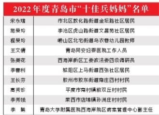 10人获评2022年度青岛市“十佳兵妈妈”。