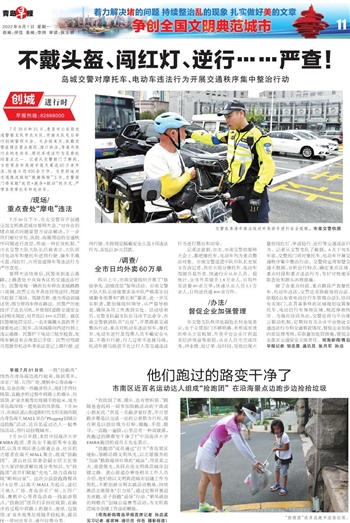 7月30日和31日,青岛市公安局交通警察支队市北大队、市南大队先后举行创城誓师大会。大会结束后,执勤交警在辖区重点路段、路口执法,寄递外卖行业的电动车、摩托车违法行为是查处的重点之一。记者从交警部门了解到,目前青岛外卖骑手每天要送60万单外卖,快递日均400余万件。为更好地对交通路况做好“疏堵保畅”工作,交警部门将采取“处罚+疏导+联动”的方式,严管各类摩托车和电动车。
