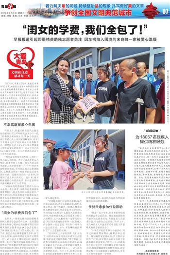 7月26日,早报以《这次,换我们来帮助你》为题,对热衷公益活动的即墨区东陆戈庄村宋良峰遭遇车祸后,他正在上大学的女儿宋鑫磊自强不息,边学习边打工赚钱撑起一个家的新闻进行报道后,在社会各界引起高度关注。许多爱心人士联系记者,主动要求献爱心。此前已为宋良峰组织过捐款的即墨精英助残志愿者协会了解情况后,决定再次对宋良峰一家进行爱心捐助。昨日上午,志愿者代表将2.7万元爱心捐款送到了宋良峰家中。同时,即墨区田横岛省级旅游度假区管委看到报道后,也特意派人送来3000元救急款。