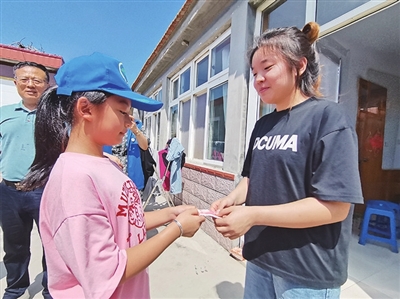 长江小学9岁小学生贾喜善(左)捐出压岁钱。